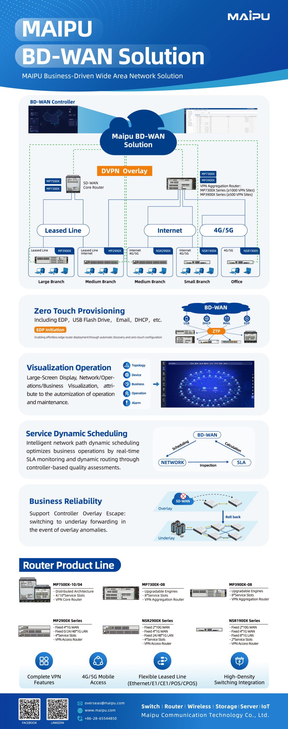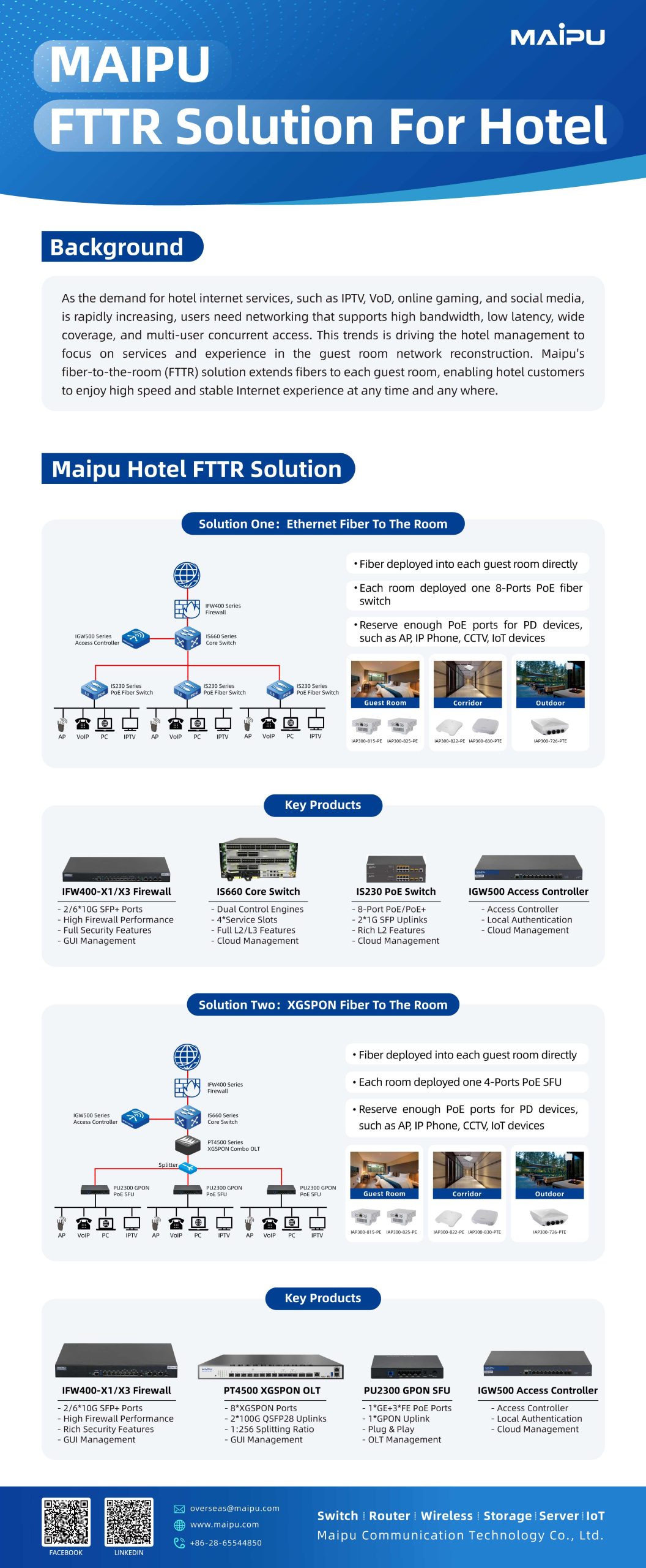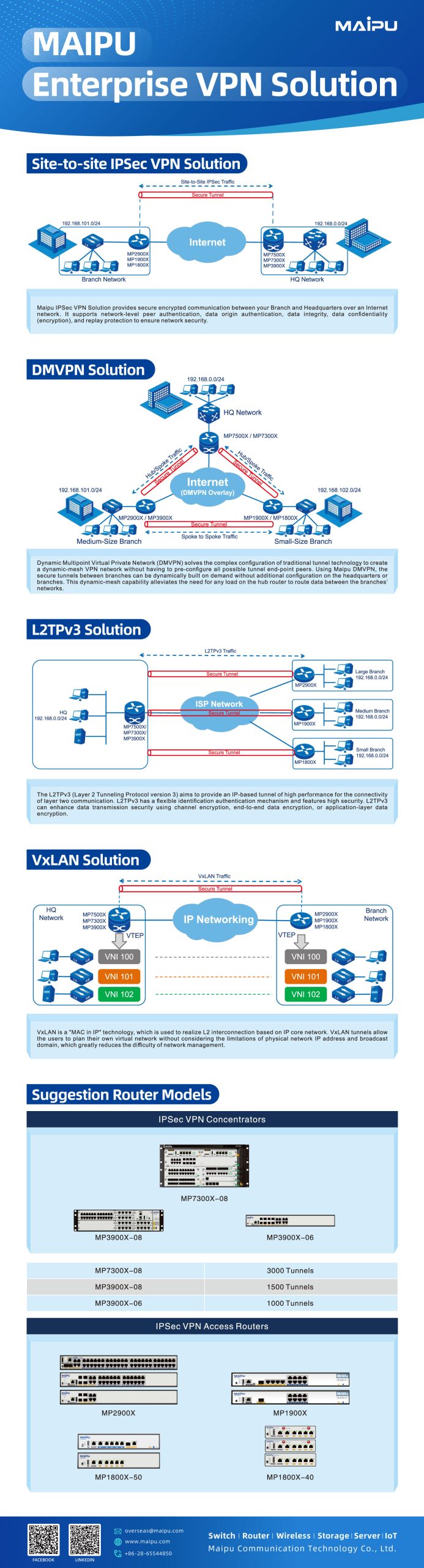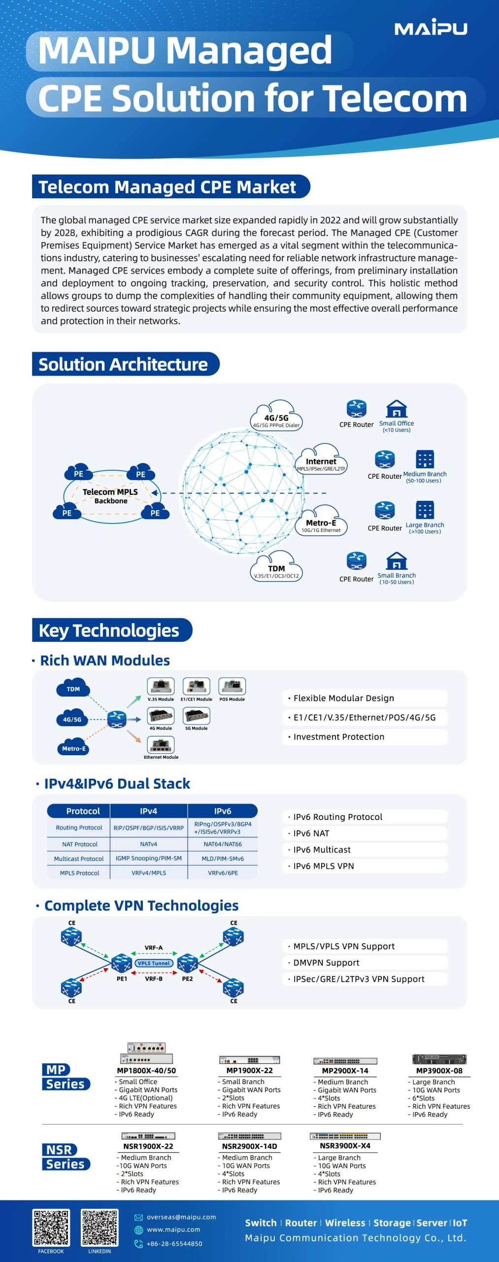 Maipu Communication Technology, founded in 1993, is a leading networking solutions provider in China. With strong R&D capabilities, over 1,500 staff, and global deployment in 60+ countries, Maipu delivers high-quality, innovative network infrastructure guided by its vision to “Make IT Intelligent.”